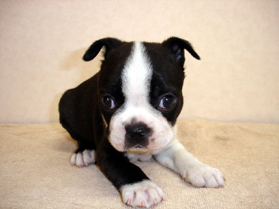 テリアはイギリス産と言うイメージが強いのですが、このボストン・テリアは数少ないアメリカ産で、まるでタキシードを着ているような黒地に白の班模様から「アメリカの紳士犬」というキャッチフレーズを持っています。